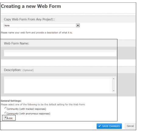 A web form allows you to quickly and easily collect information from your business contacts by using a survey called a web form. Public web form results are similar to community web form results, except responses are anonymous.