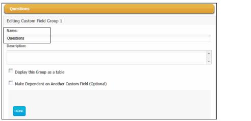 You have created a web form with a custom field group. At the top of the page, the name of the group refreshes with the name you typed in step 9.